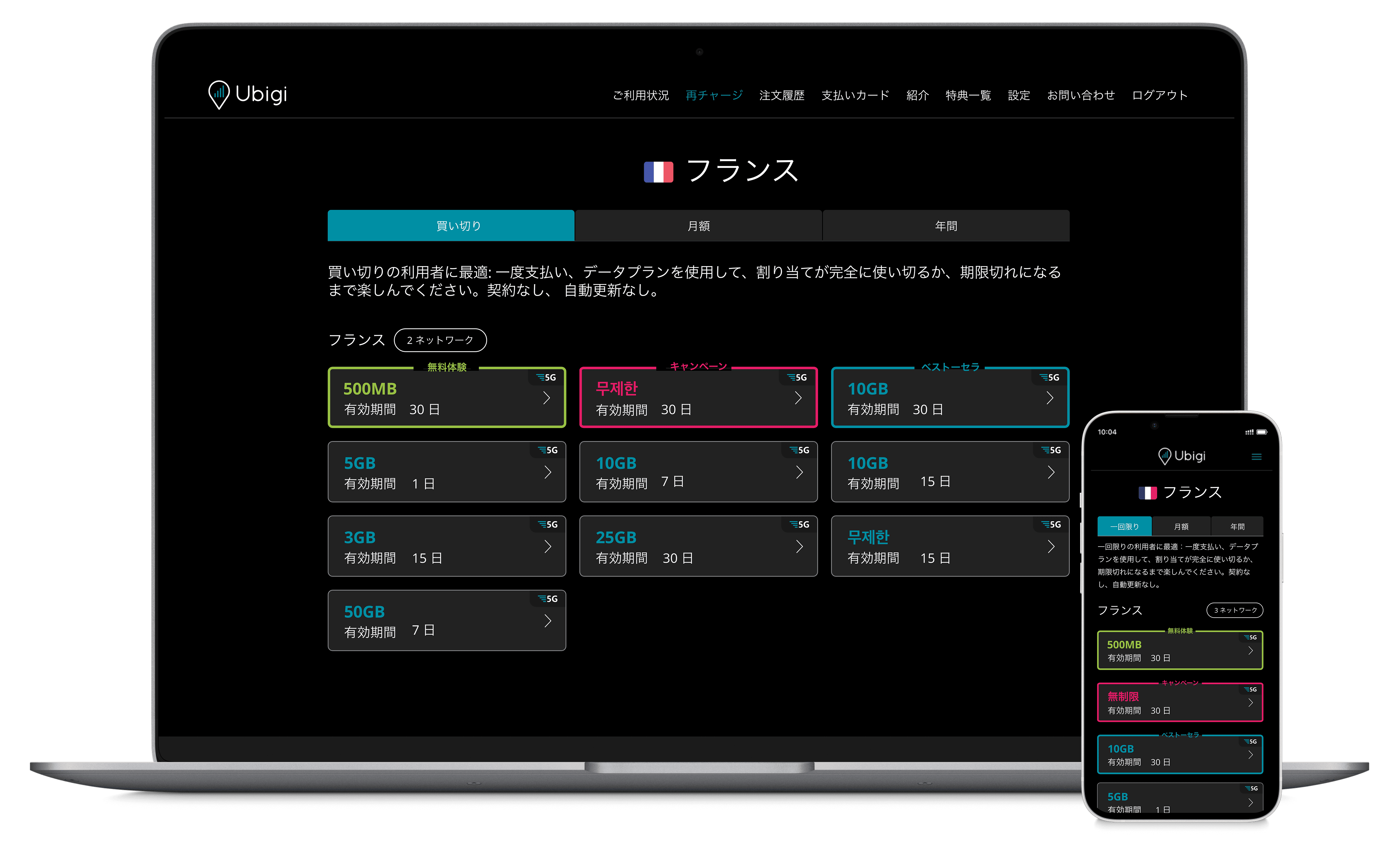 - 豊富な国際データパッケージオプション